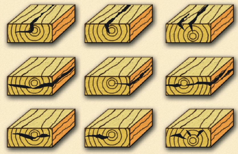 Трещины вдоль волокон также указывают на проблемы, особенно если они проходят по большей части длины заготовки.