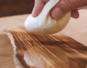 Традиционный метод нанесения – тампон из льняной ткани, свернутый в плотный валик и помещённый в хлопковую оболочку. Внутрь вводят 3–5 мл готового состава. Поверхность сначала протирается сухим валиком для равномерности. Движения круговые или в виде восьмёрки, без давления, с минимальной скоростью, чтобы не вызывать загустевания.