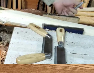 Рассмотрим сначала скобель, чья дугообразная стальная полоса с двумя рукоятками имеет радиус кривизны от 30 до 150 миллиметров. Ширина его лезвия чаще всего лежит в диапазоне 20-40 мм, а угол заострения составляет примерно 30 градусов для уверенного вгрызания в массив.