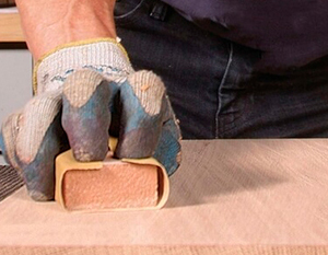 Это делается вручную бруском с закрепленной наждачной бумагой. Движения должны быть короткими и направленными вдоль волокон, чтобы не выкрошить поперечные слои. После выравнивания торцы обрабатываются грунтовочными составами, но перед этим важно пройтись по ним самой мелкой наждачкой из запланированных, чтобы открыть поры для проникновения грунта.