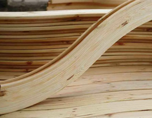 Суть процесса заключается в выбранной заготовке продольного паза, куда вклеивается и запрессовывается гибкая рейка. После полимеризации клея собранный узел приобретает стабильную форму. Такой подход позволяет получать изгибы с радиусом от 300 миллиметров.
