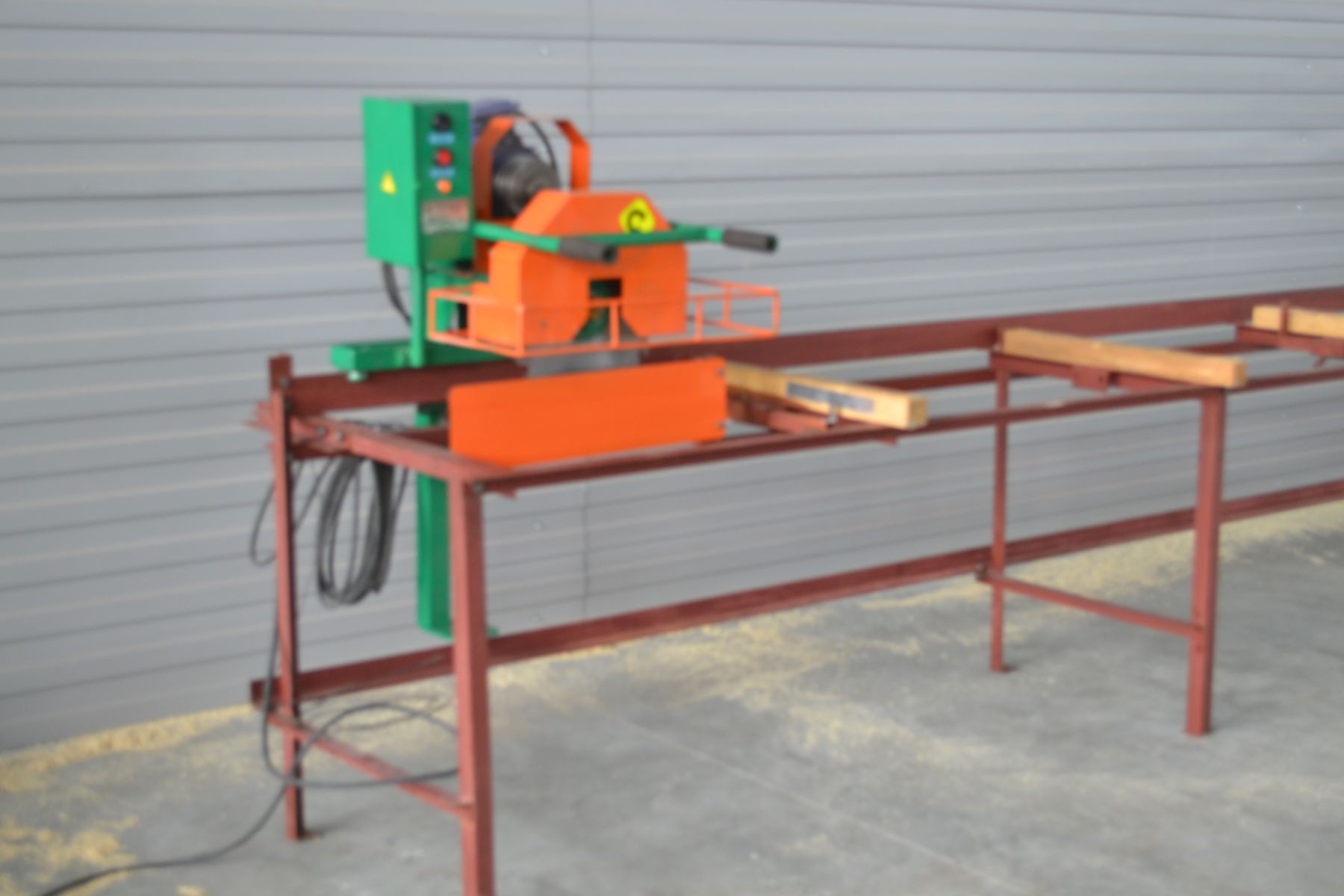 Исключительно жесткая и безопасная конструкция. В конструкции станков применены беззазорные направляющие, что обеспечивает идеальную точность пиломатериала. Первоначально обрезается обзол, далее заготовка базируется гранью по упорам, имеющим диапазон регулировки 5...250мм. Станок оптимален для производства бруска, заготовки под погонаж, индивидуального безотходного раскроя доски. Перемещение пильного блока осуществляется вручную оператором станка за поручни. Для удобства транспортировки рама станка разбирается на несколько составляющих.