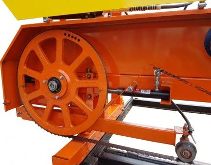 - Чугунные пильные шкивы (колёса) Ø 520 мм рассчитаны на применение широкого ассортимента пил шириной 35-38 мм и длиной 4026 мм.