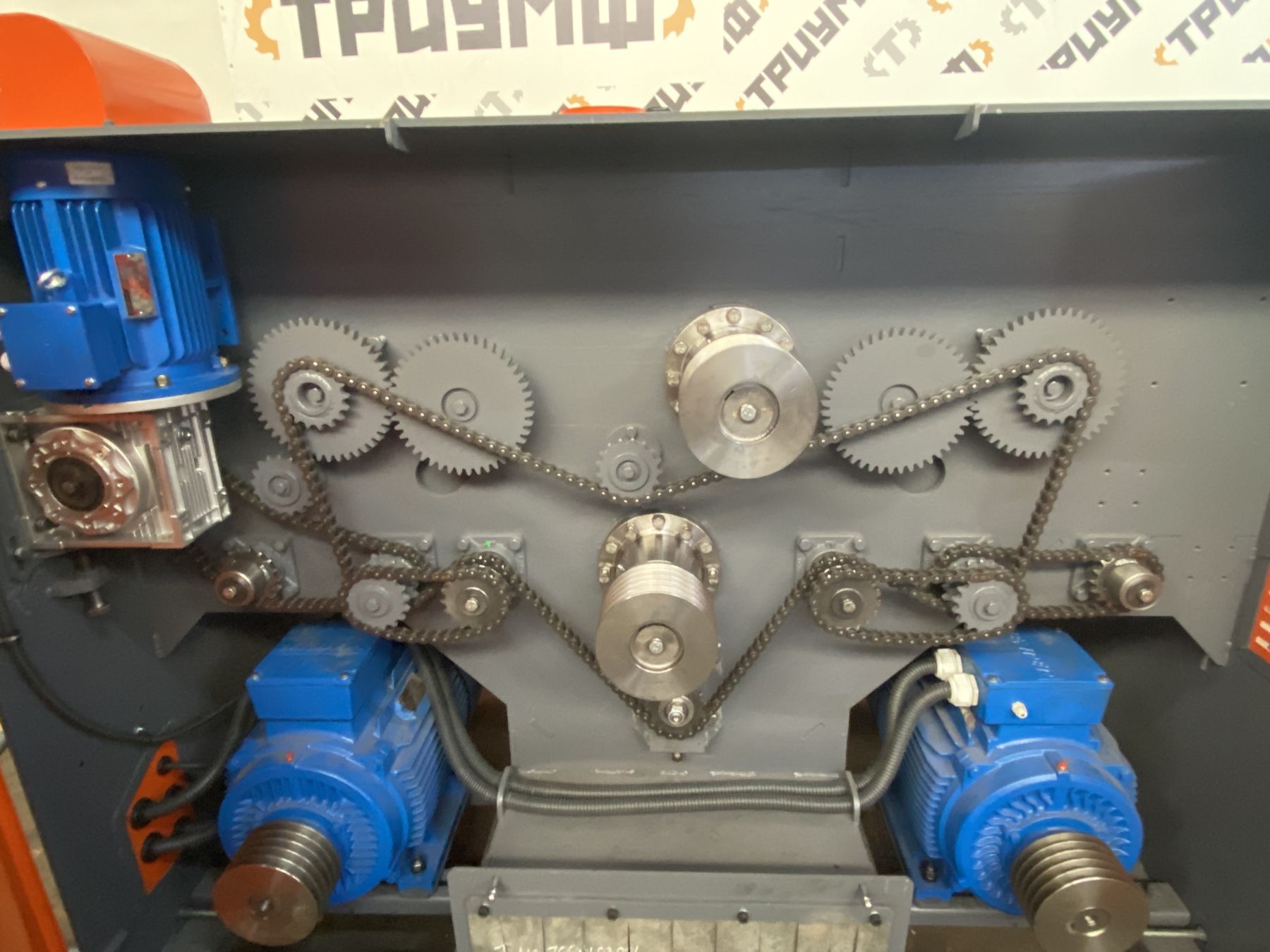 Привод пильных дисков осуществляется от 2х электродвигателей.