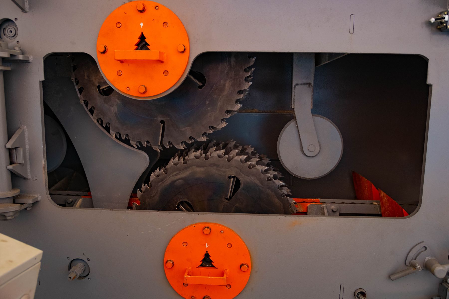 На станке устанавливается до 8 пил на каждый вал двигателя. Общее количество пил до 16 штук.