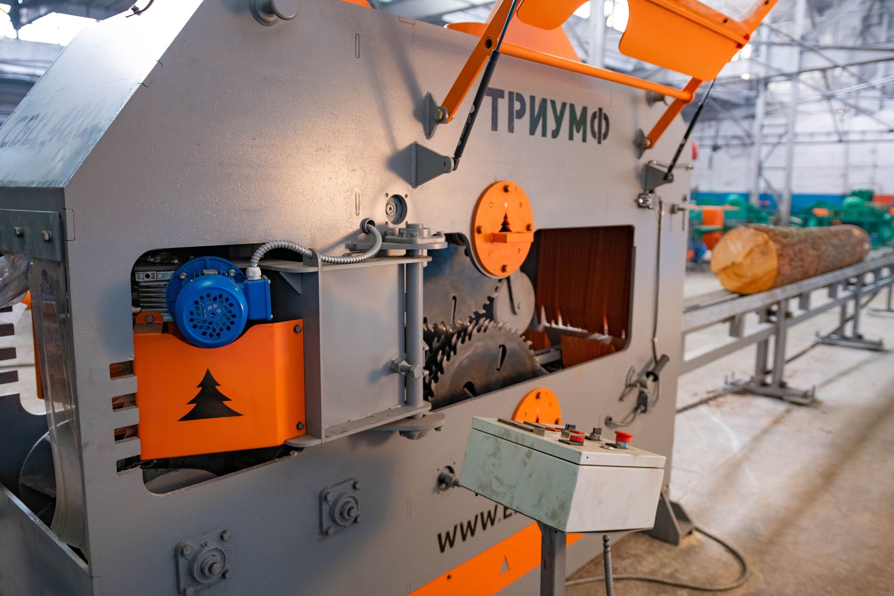 Двухвальный бревнопильный станок «Триумф» 16П480 Classic предназначен для распиловки бревен диаметром до 470 мм для получения лафета и бруса.