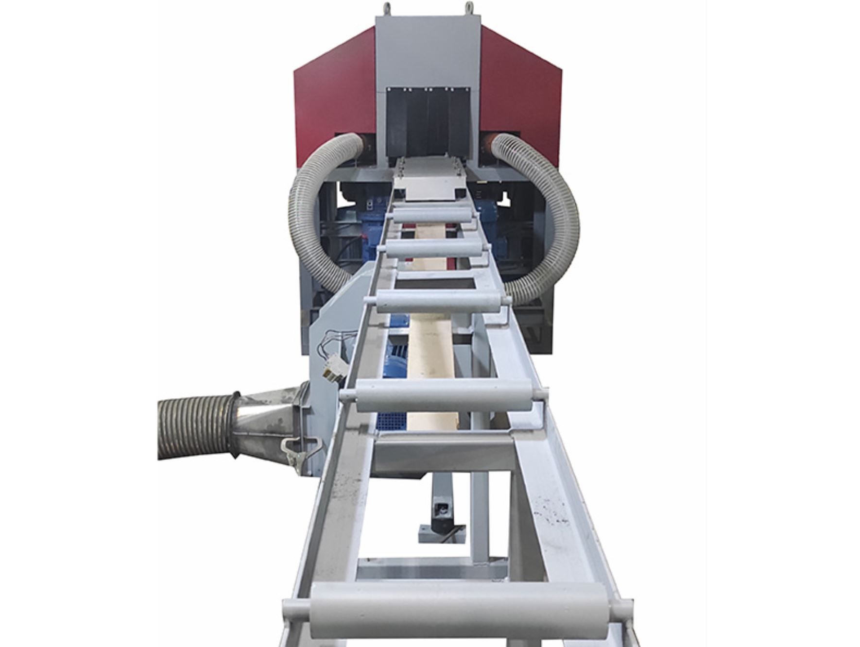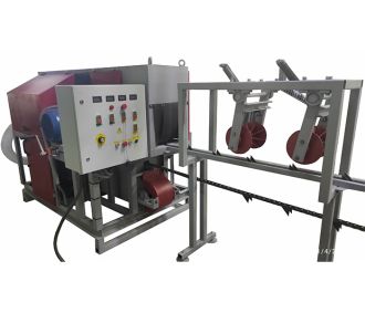 Транспортер скребковый цепной предназначен для автоматического удаления стружки, щепок и опилок из-под станины фрезерно-брусующего блока и пильного узла. Наличие скребкового транспортера в значительной мере повышает не только производительность станка, а также культуру и удобство. Конструктивно транспортер состоит из специальной транспортерной цепи, перемещающейся по направляющим за счёт мотор-редуктора, натяжение цепи осуществляется натяжным блоком с возможностью регулировки.